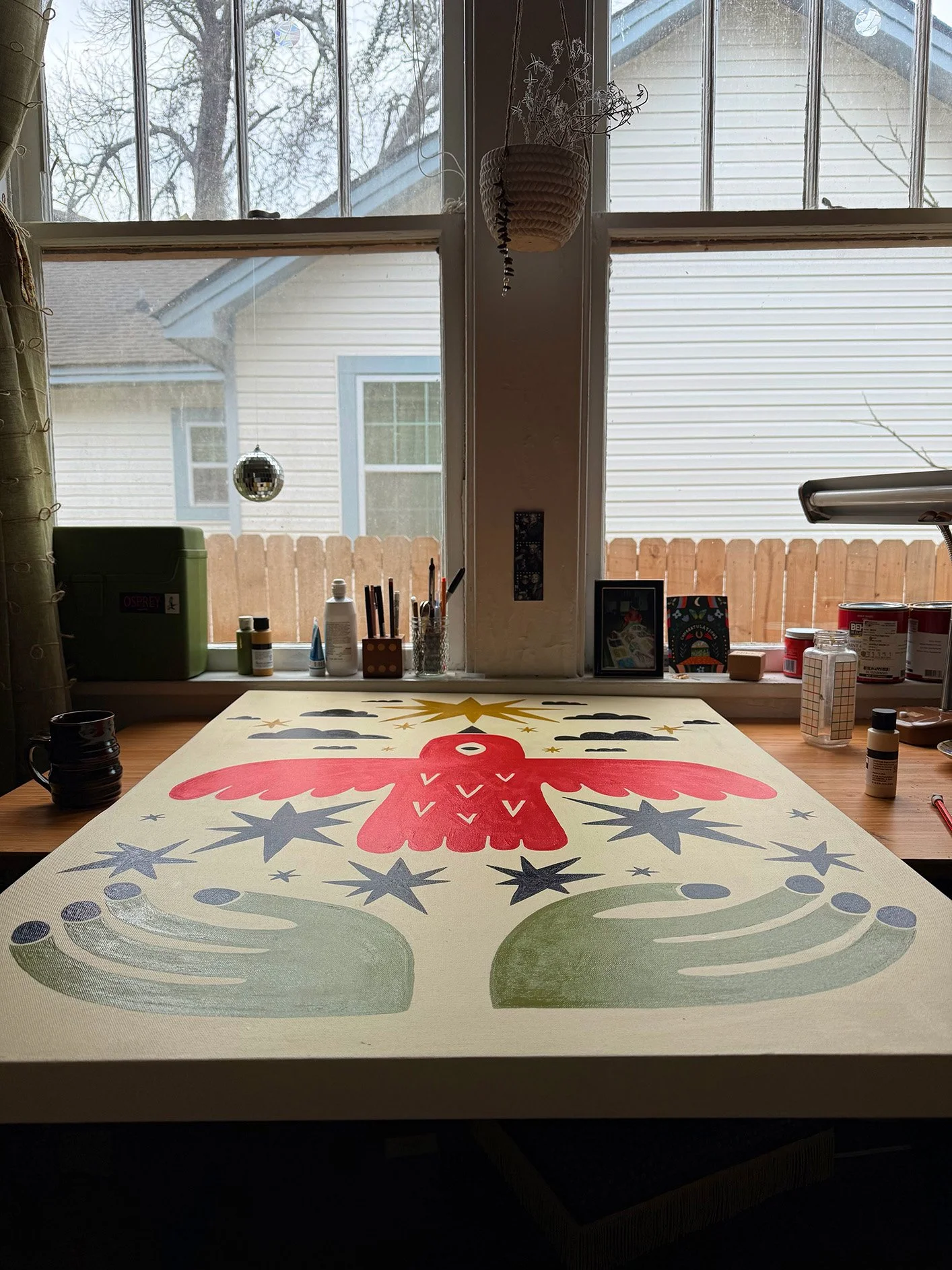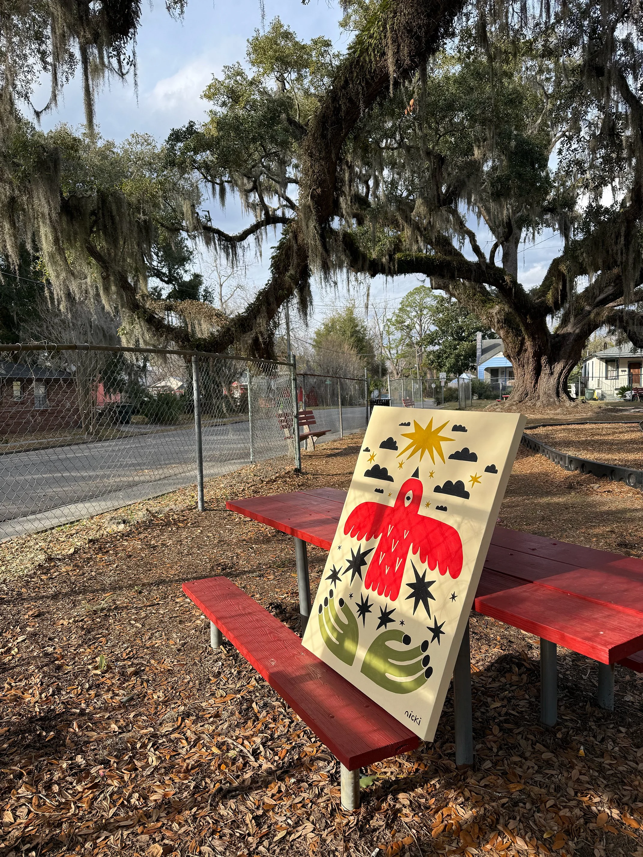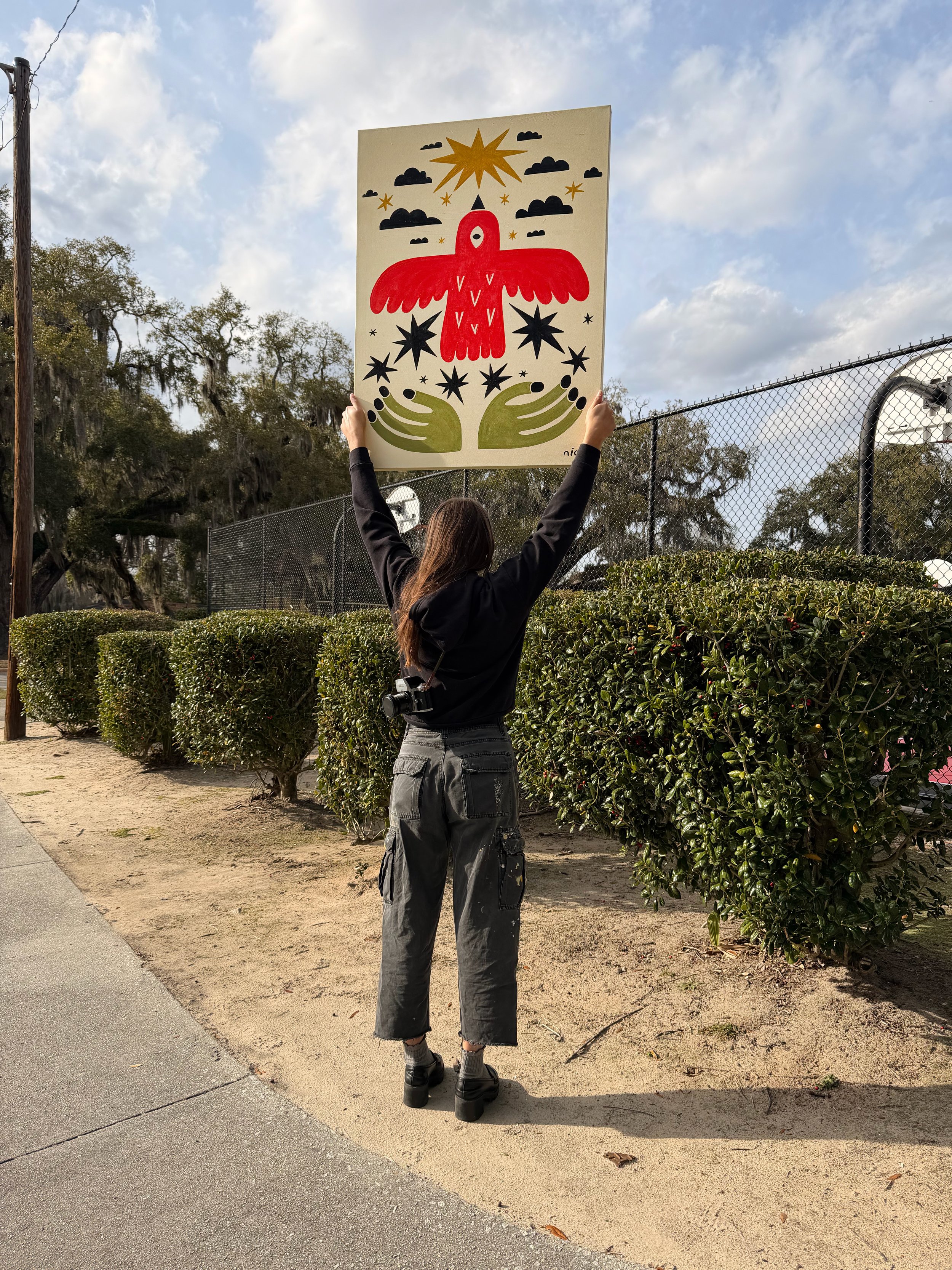 I’ve been selling versions of this bird at the Forsyth Park and it has prevailed to be eye catching. So much so that I have 2 commissions to paint it large scale. For my residency I would love to explore this design further and keep painting it at large scale.